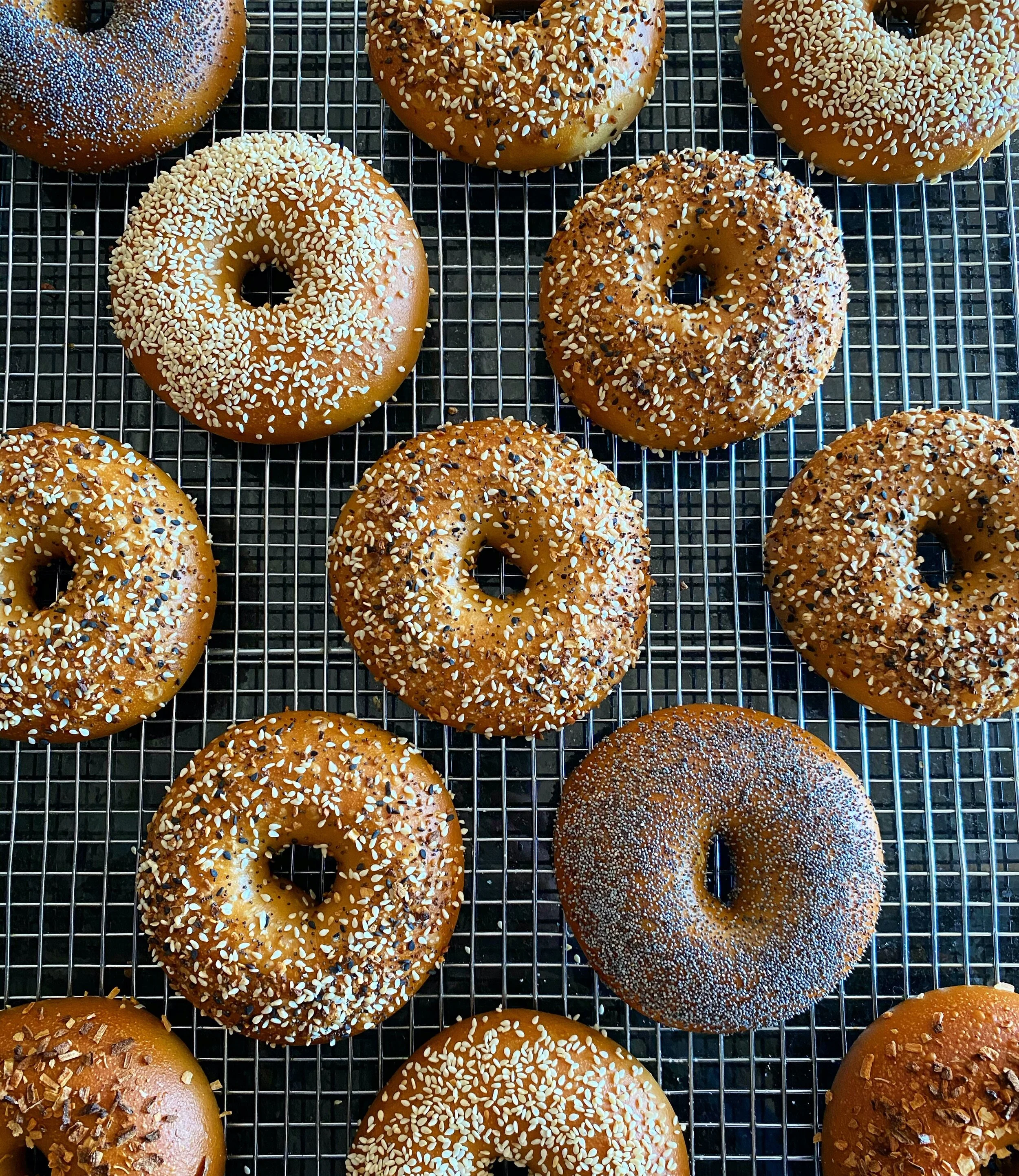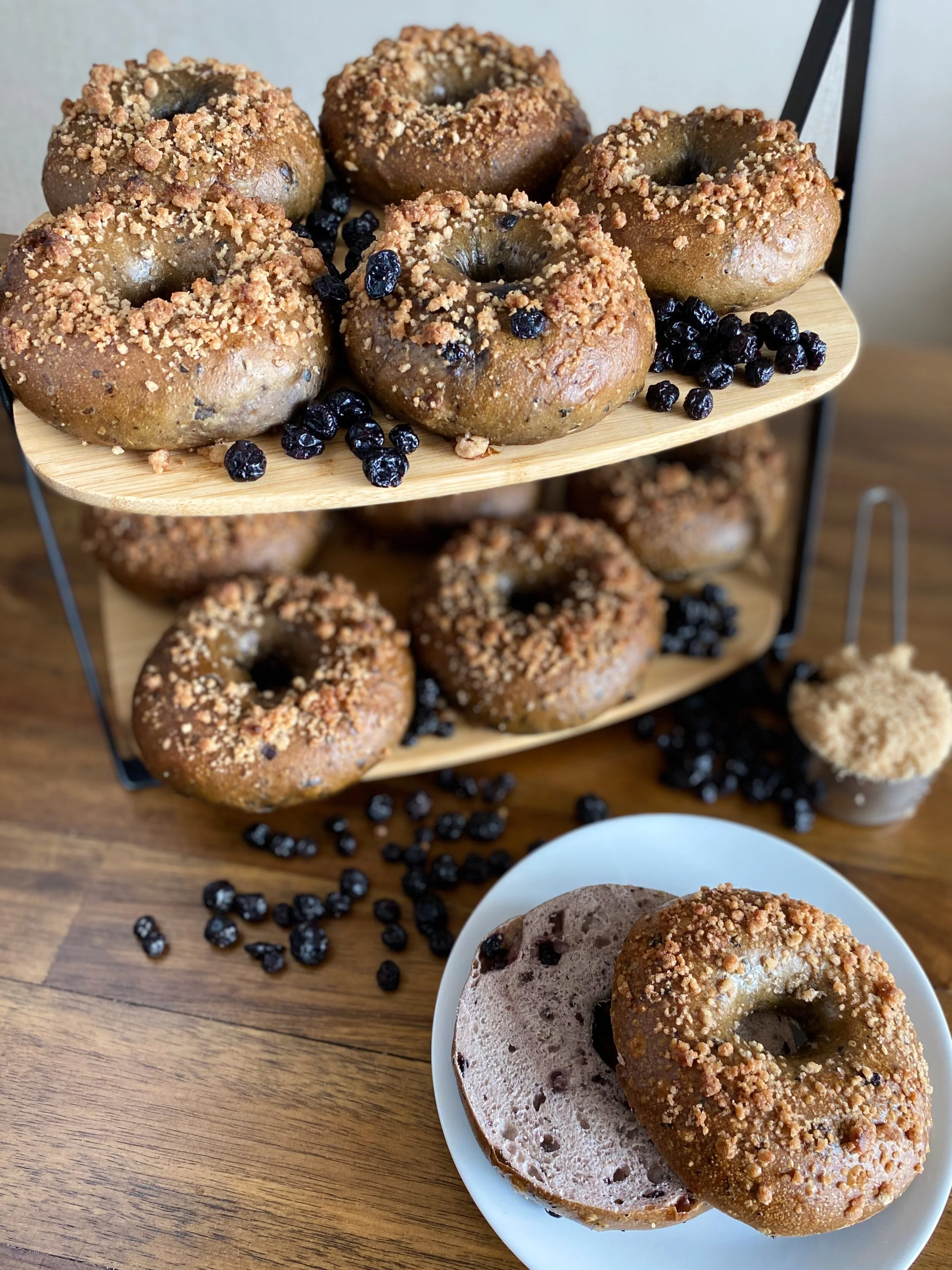 Our specialty bagel flavors rotate with seasonal and creative inspiration. Some of our most popular staples like Cacio e Pepe and Garlic & Dijon will always be available, while others like Blueberry Crumble, Cranberry Orange Blossom, Pumpkin Spice, Gingerbread, and more will come and go.